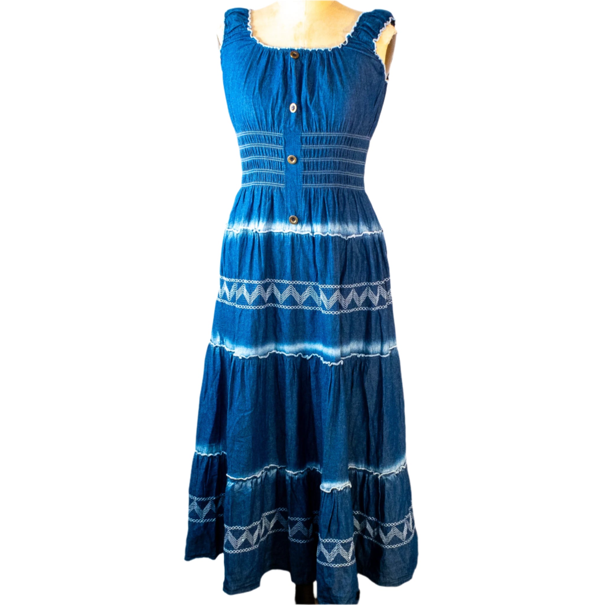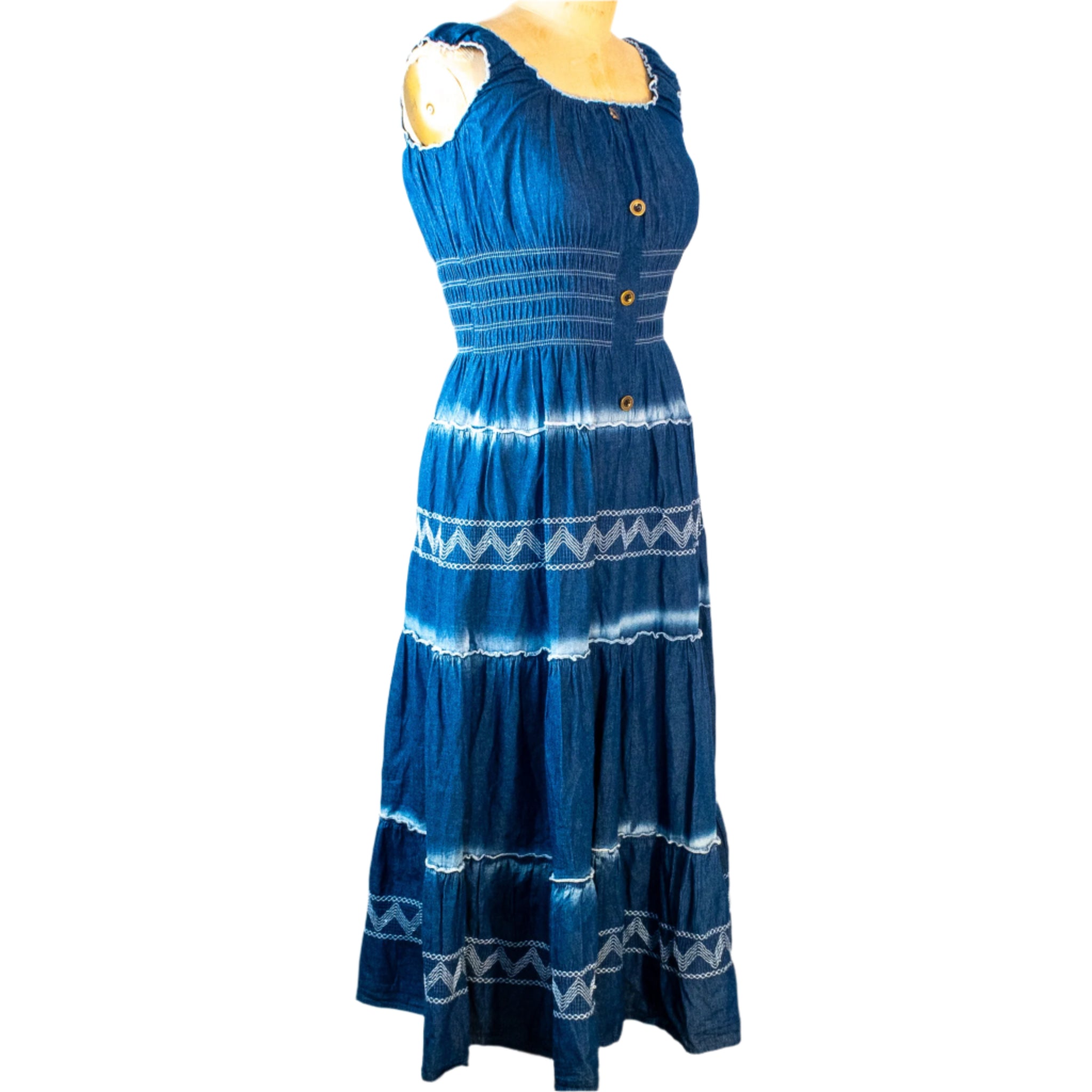 Indigo Boho Maxi Dress, Size Medium