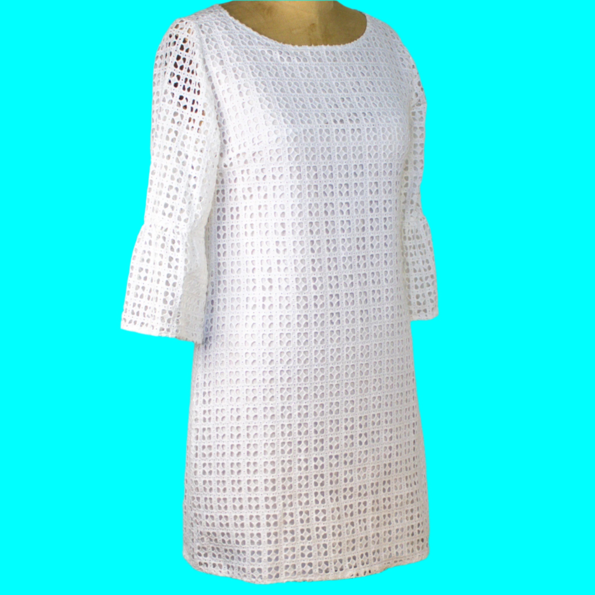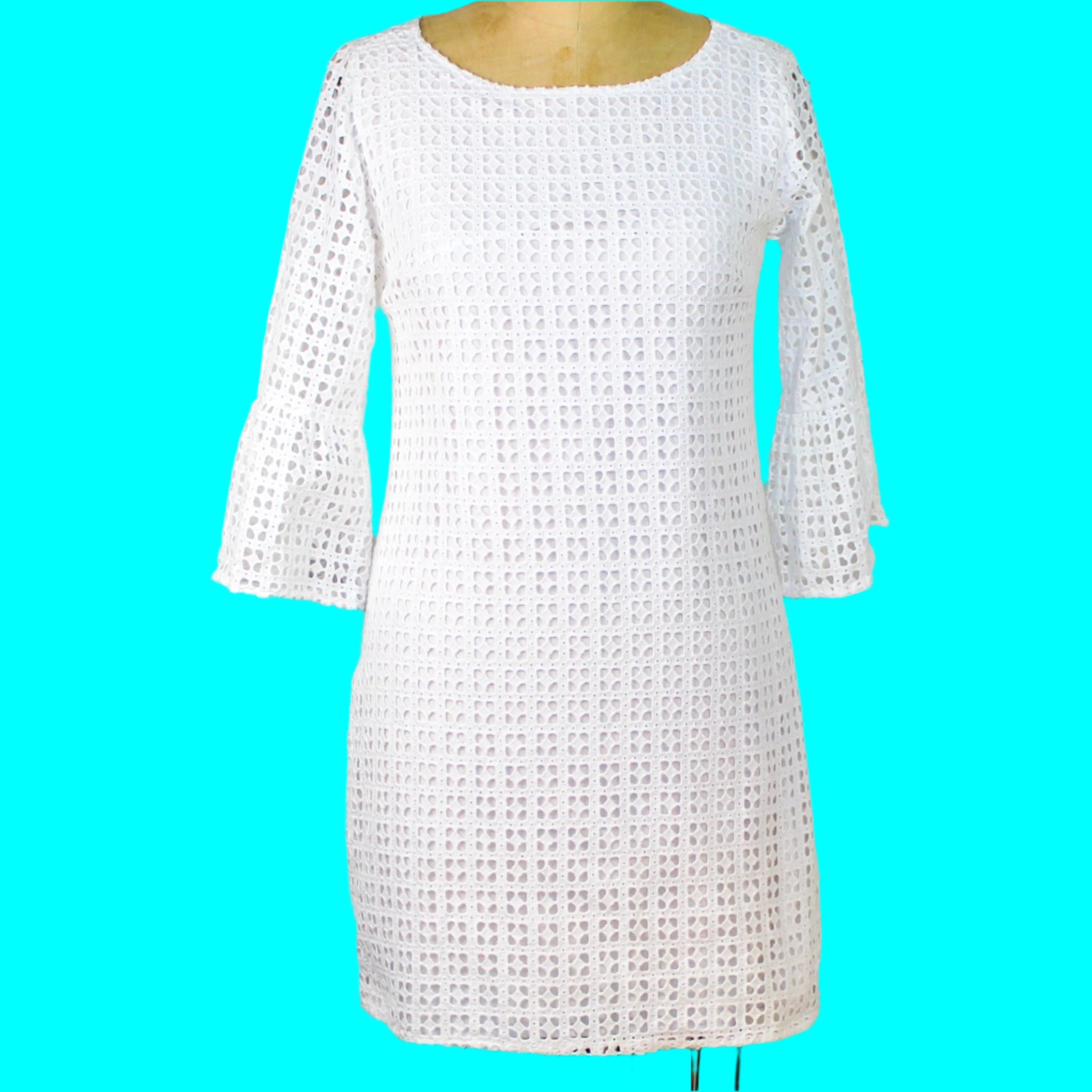 White Eyelet Bell Sleeve Dress by French Curve, Size X-Small