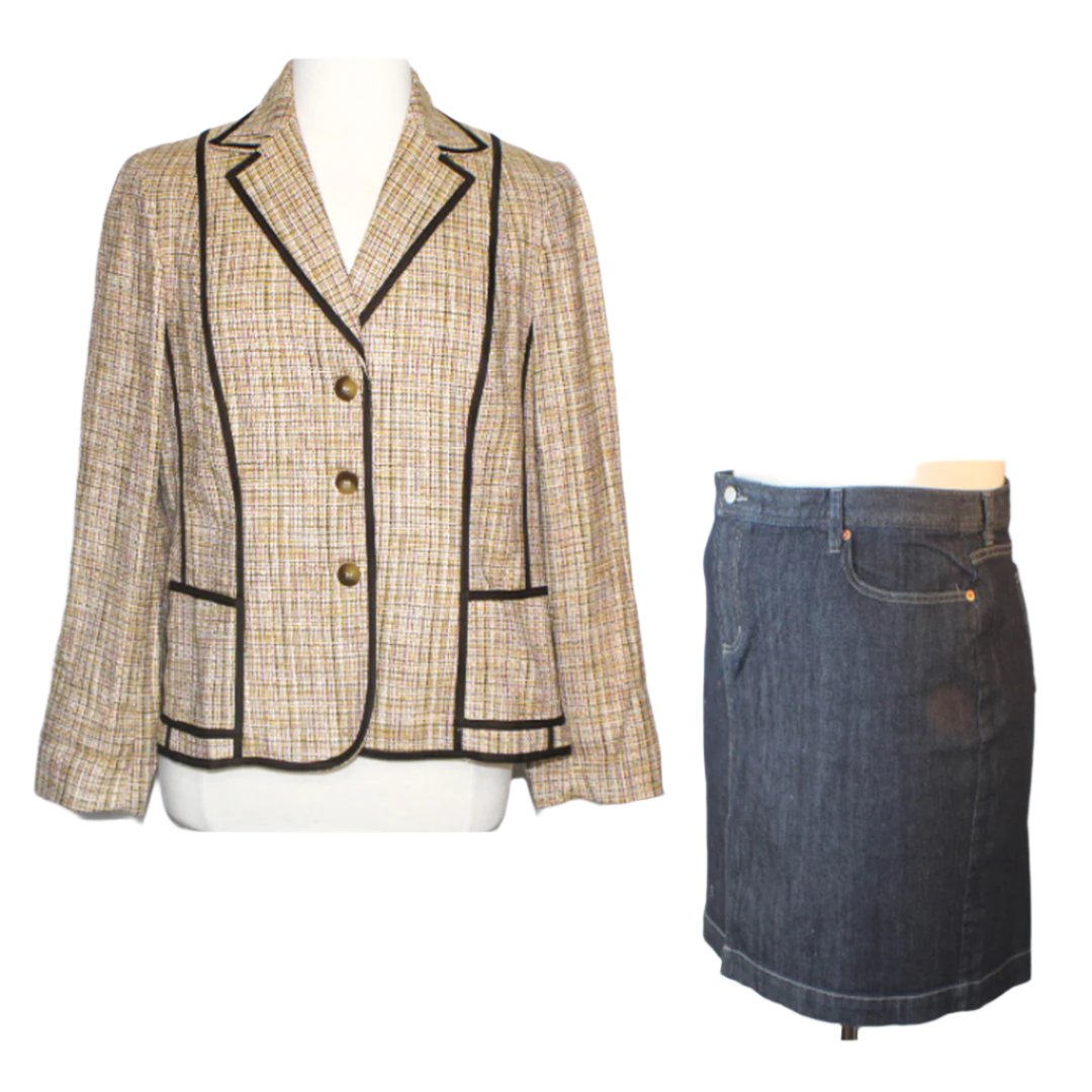 Timeless Tweed Blazer & Jean Skirt Duo, Size 20