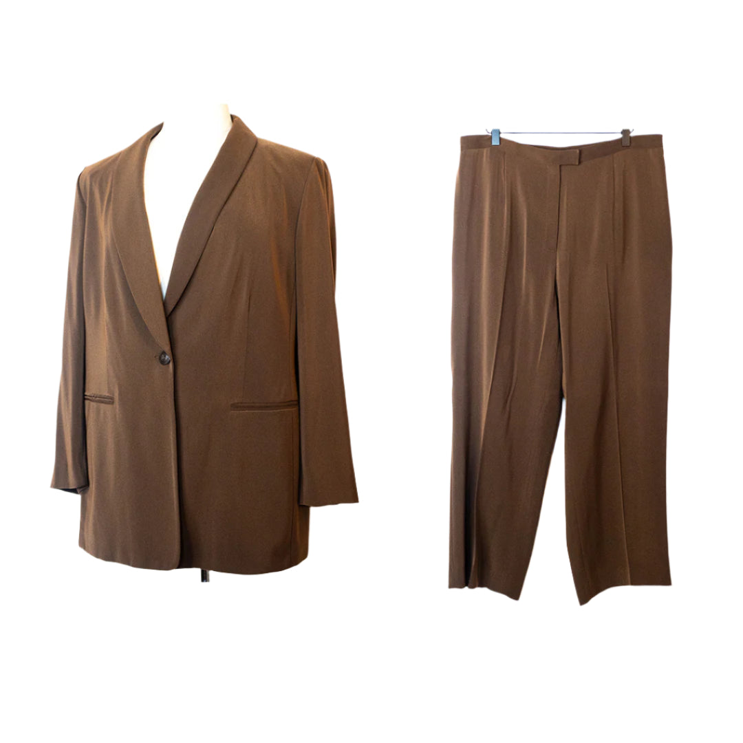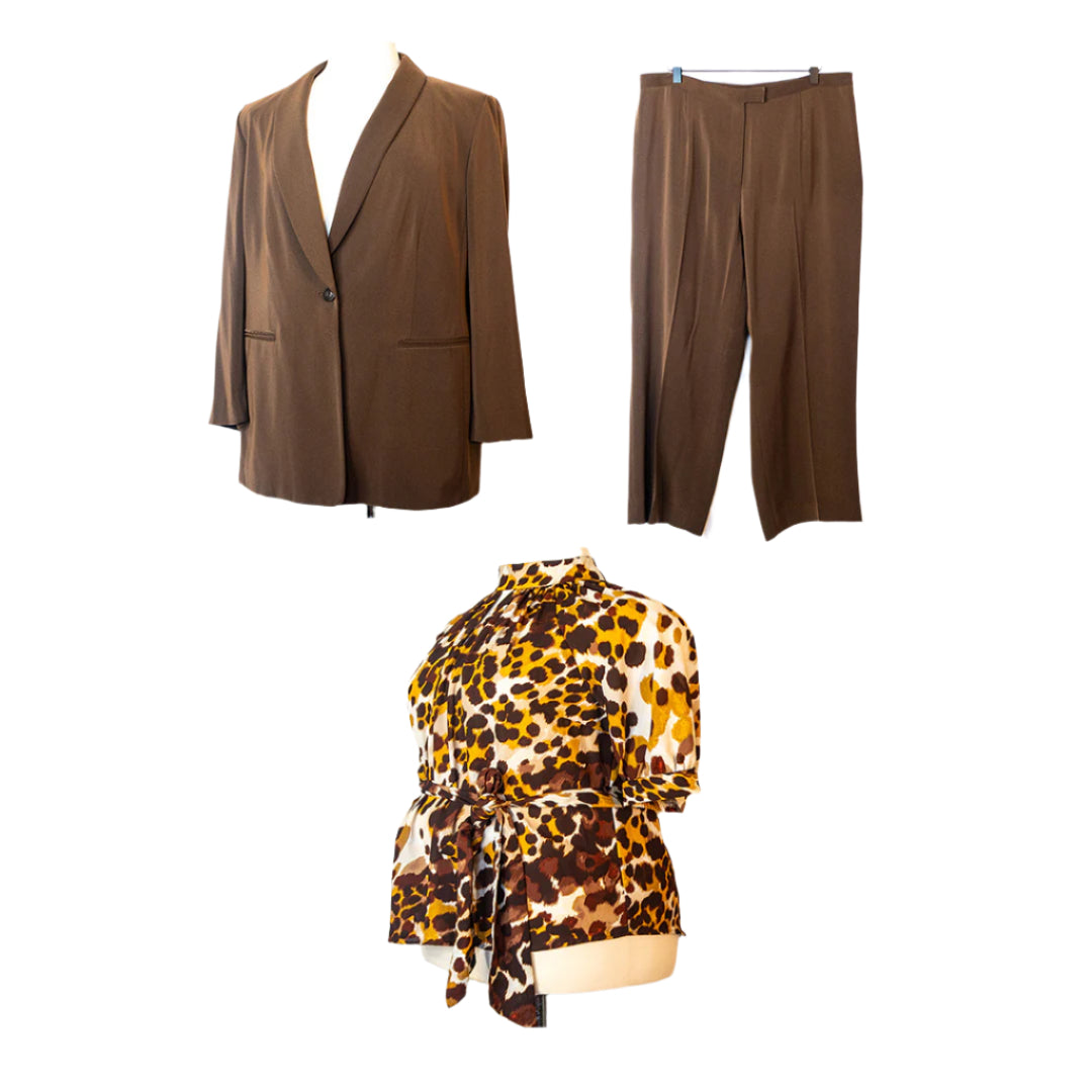 Chic Brown Suit (Size 16W) & Leopard Print Blouse (Size X-Large) Special Offer