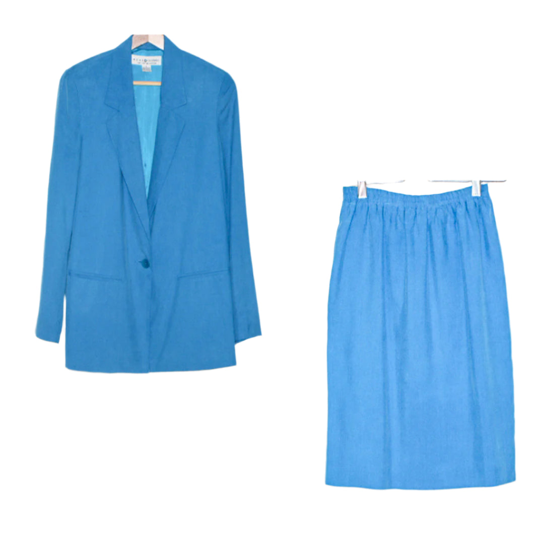 Elegant Azure Silk Ensemble by Saks Fifth Avenue, Size Small