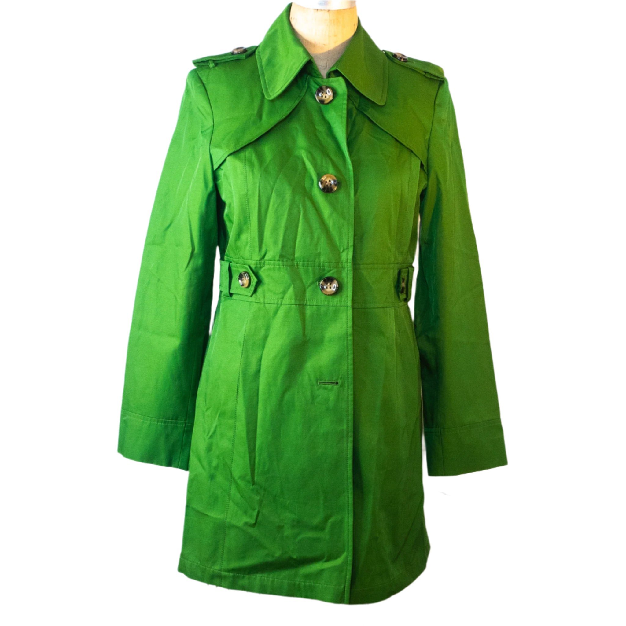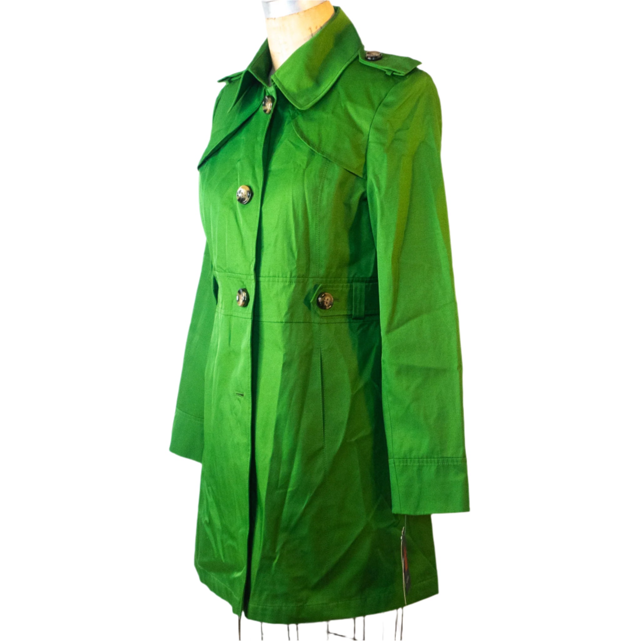 Emerald Elegance Trench Coat by Gallery, Size Medium