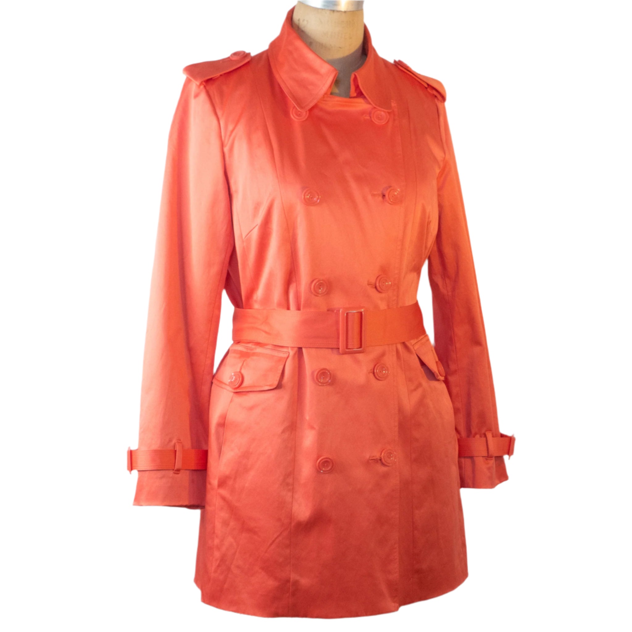 Joan Rivers Signature Coral Trench Coat, Size Medium