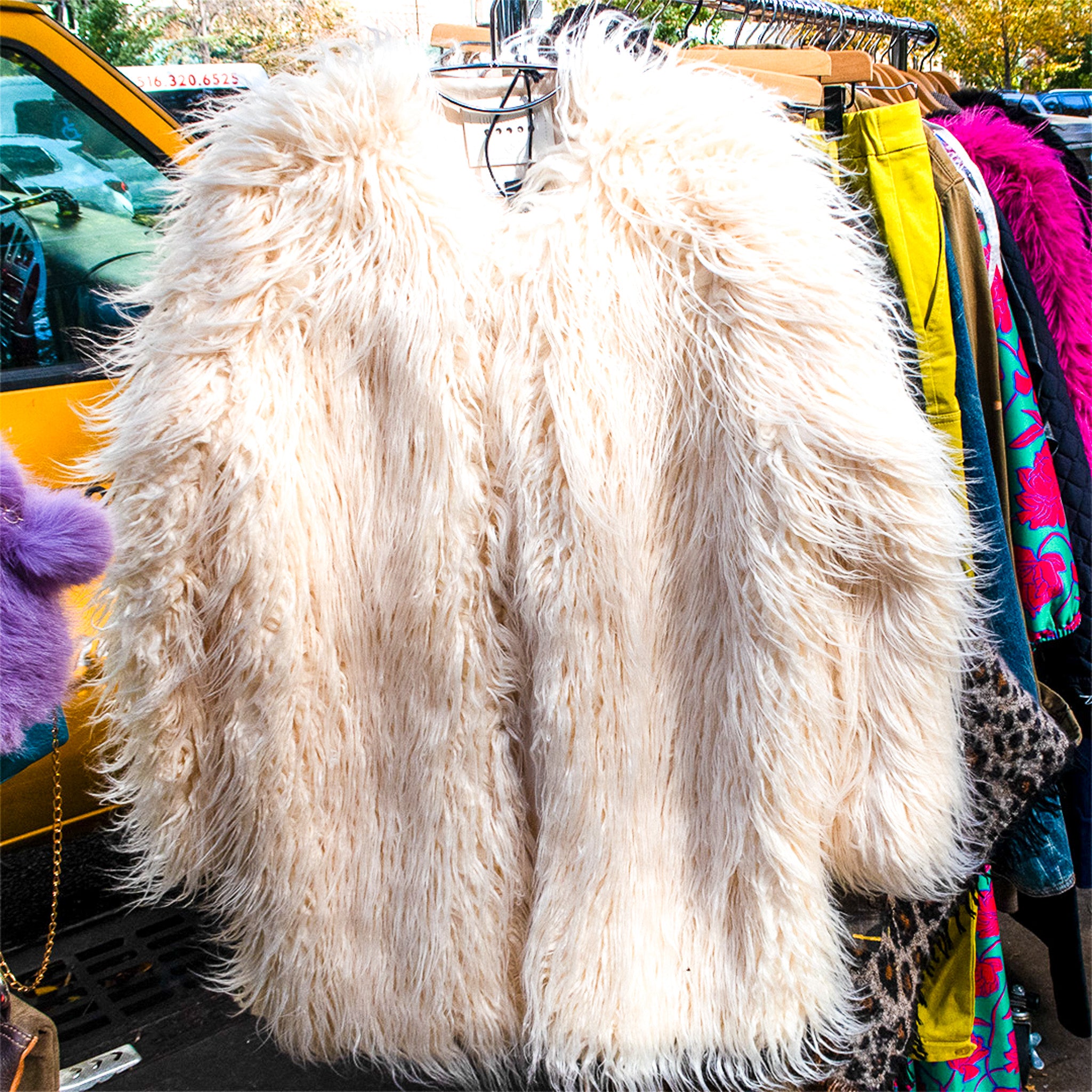 Faux Fur Cream Coat, Size Small